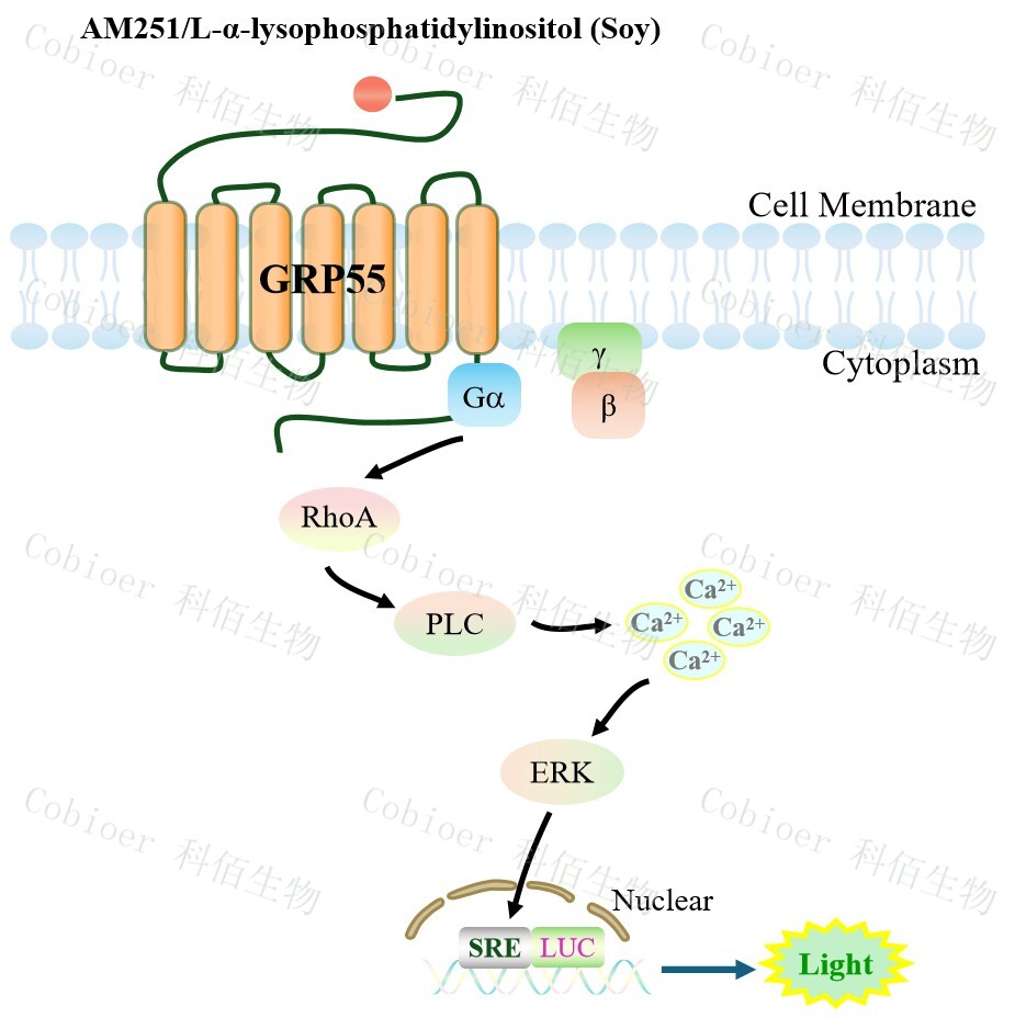 GPR55 Reporter Cell 藥靶模型很好的模擬了體內(nèi) GPR55 的信號(hào)轉(zhuǎn)導(dǎo)過(guò)程,原理見下圖所示。 ![]() Figure 1. GPR55 Reporter Cell 細(xì)胞模型原理圖 |