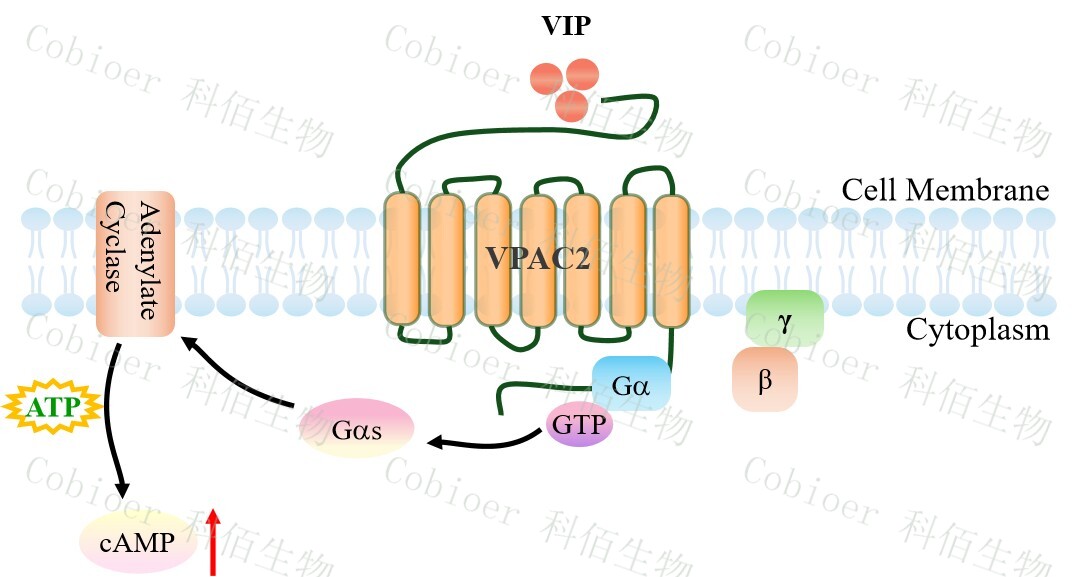 VPAC2 CHO 細(xì)胞藥靶模型很好的模擬了體內(nèi) VPAC2 的信號轉(zhuǎn)導(dǎo)過程,原理見下圖 所示。