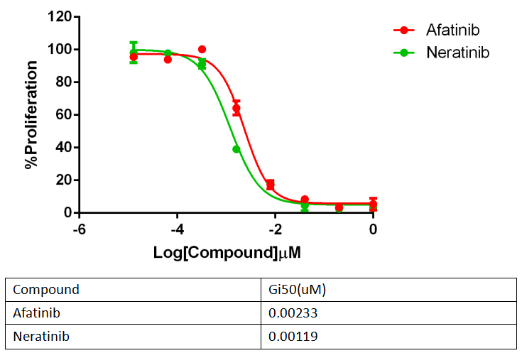 Figure 2. Anti-proliferation assay of two reference compounds on the Ba/F3_HER2 WT Stable Cell line.