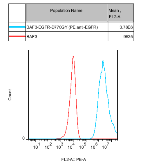 Figure 2. Recombinant EGFR D770>GY/BaF3 stably expressing EGFR.