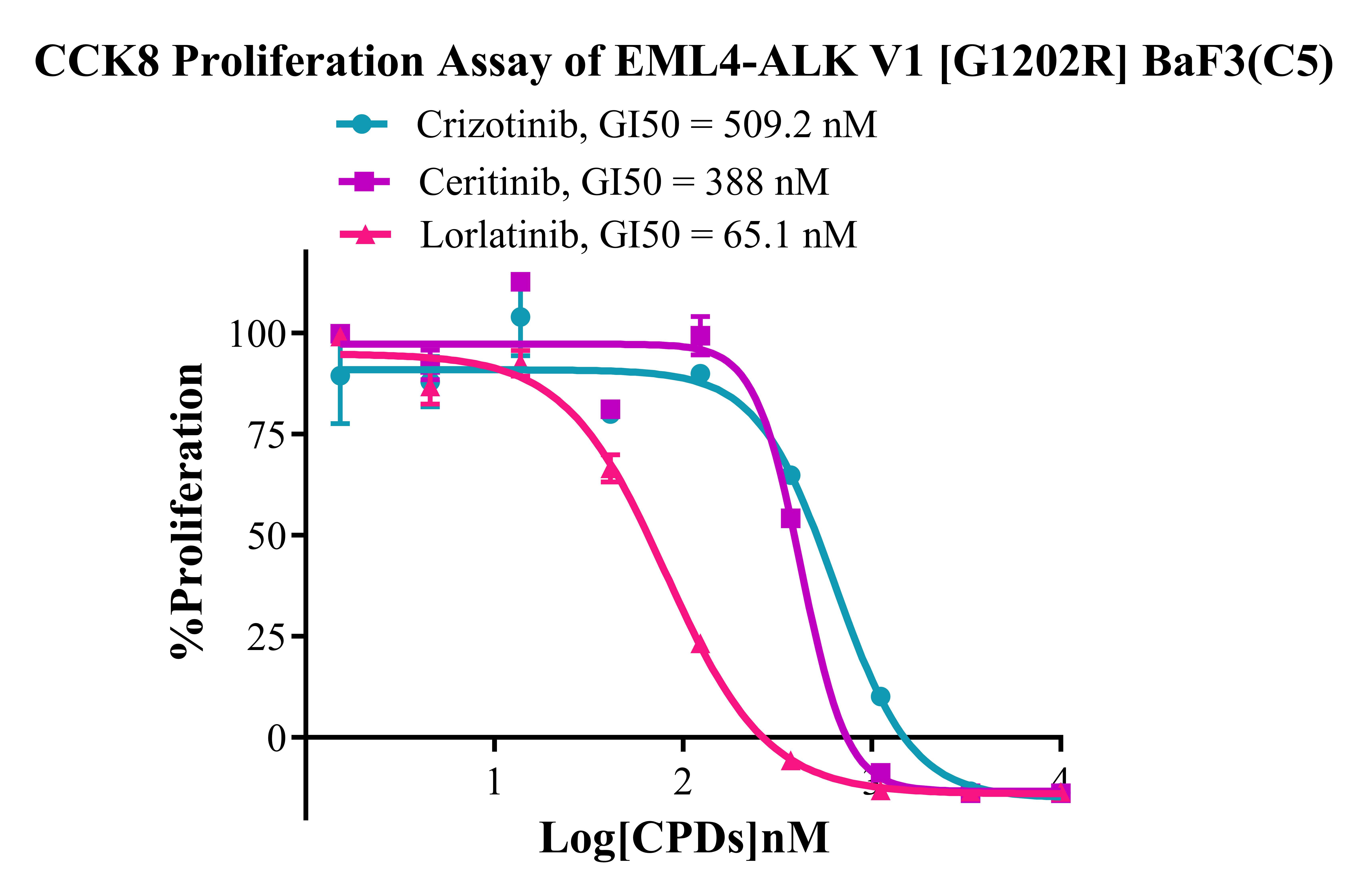3. Anti-proliferation assay Figure 5. CCK8 Proliferation Assay of EML4-ALK v1 [G1202R] BaF3(C5). |