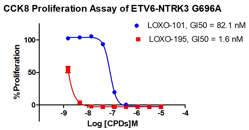Figure 4. CCK8 Proliferation Assay of ETV6-NTRK3 G696A.