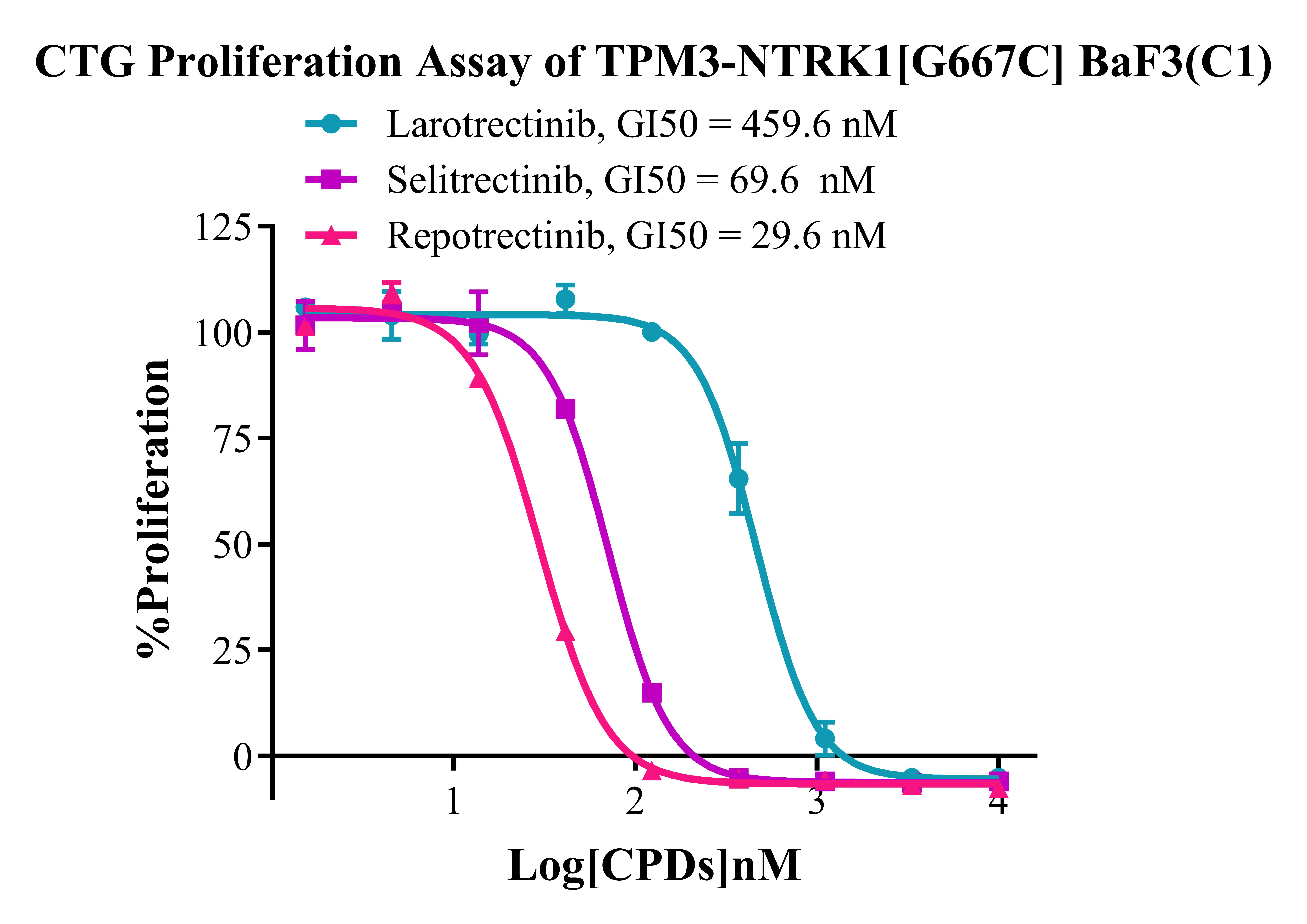 Figure 5. CTG Proliferation Assay of BaF3 TPM3-NTRK1 [G667C] BaF3 (C1).