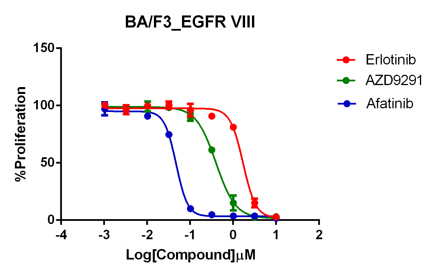 Figure 2. Anti-proliferation assay of three reference compounds on the EGFR VIII/BaF3 Stable Cell Line .