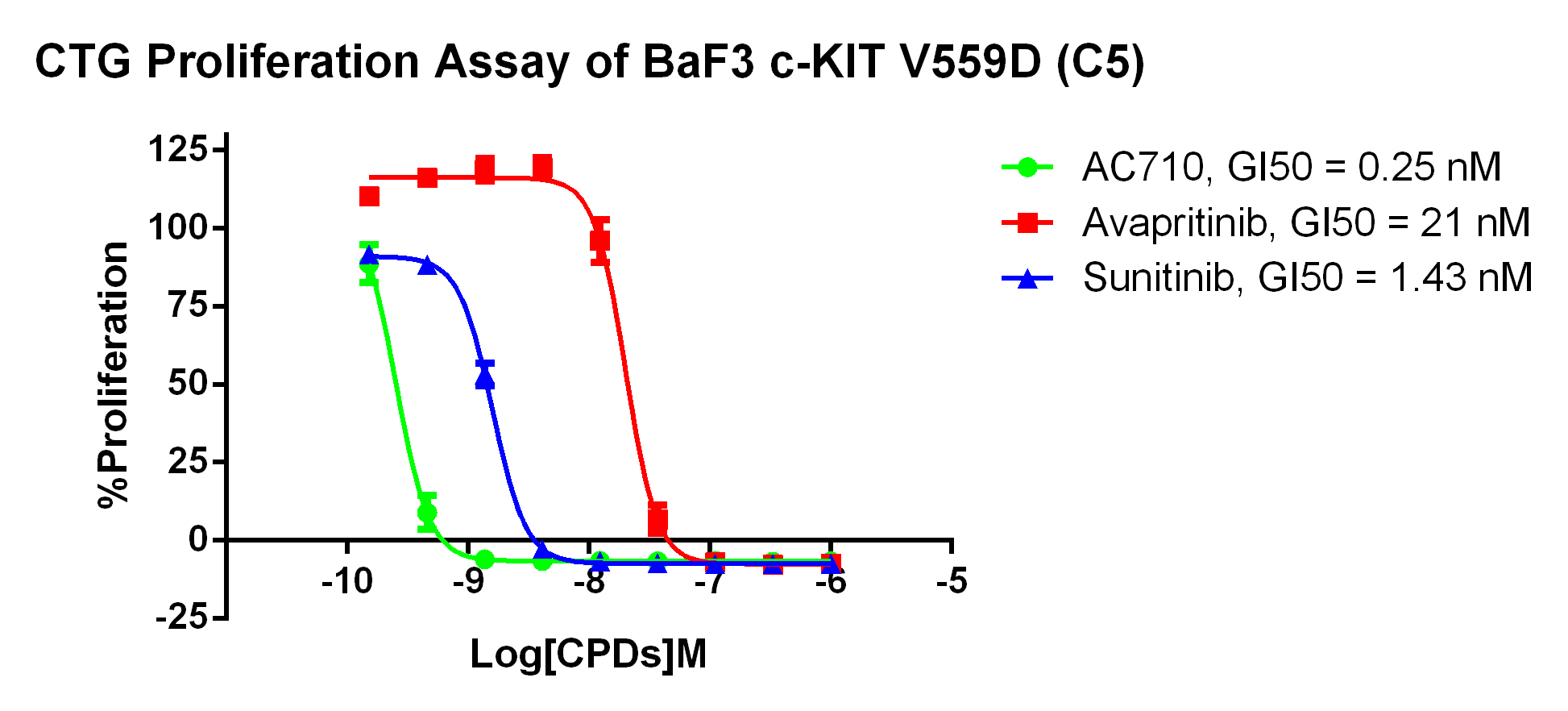 Figure 2. CTG Proliferation Assay of BaF3 c-KIT V559D (C5).