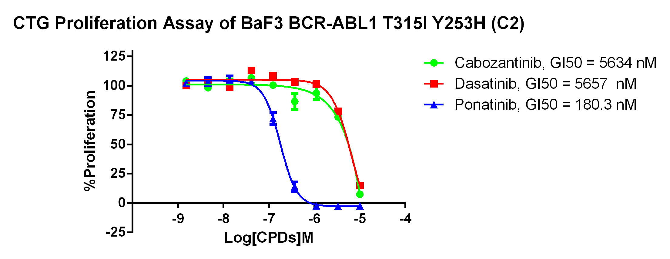 Figure 5. CTG Proliferation Assay of BaF3 BCR-ABL1 T315I Y253H (C2).