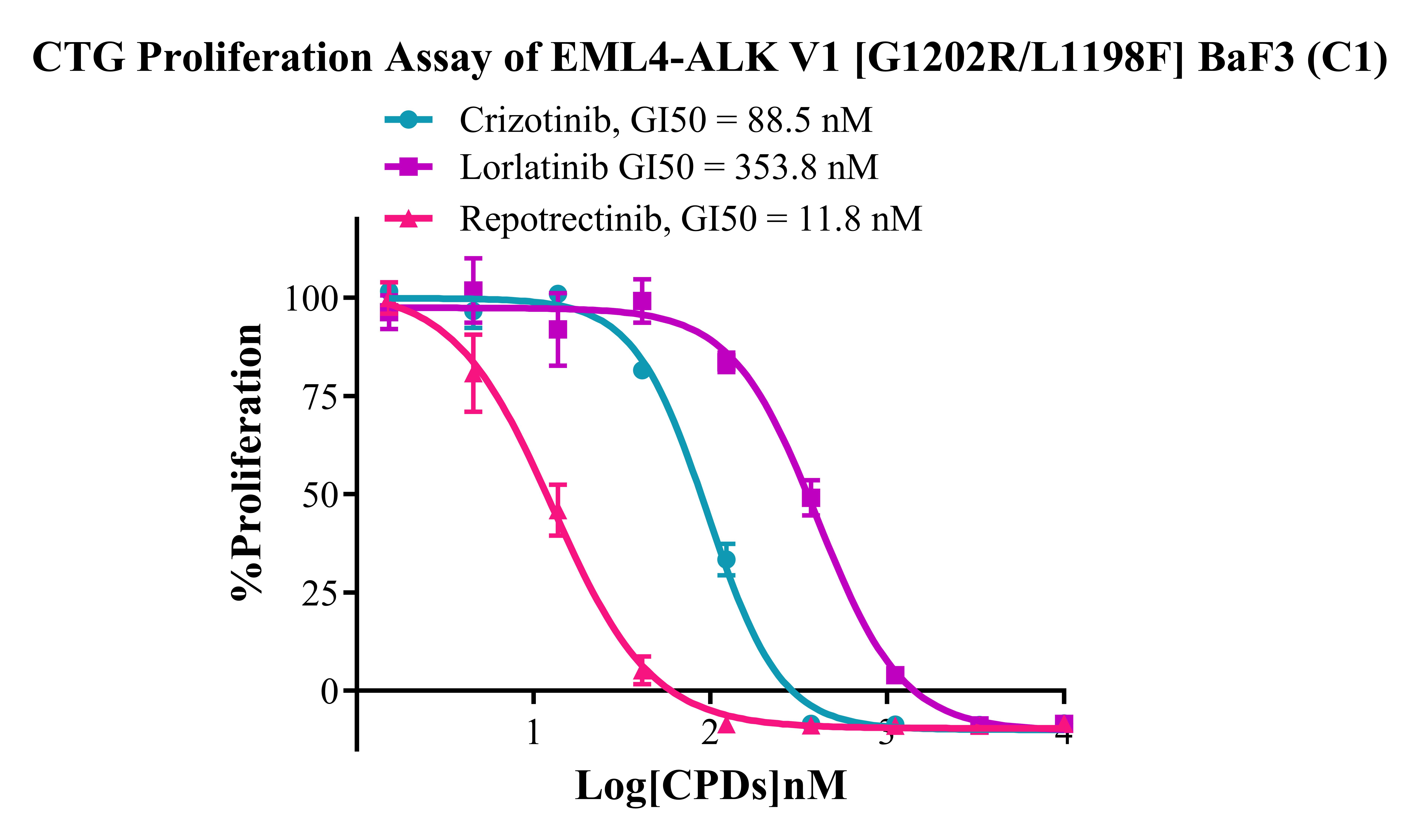 3. Anti-proliferation assay Figure 5. CTG Proliferation Assay of EML4-ALK V1 [G1202R/L1198F] BaF3(C1). |