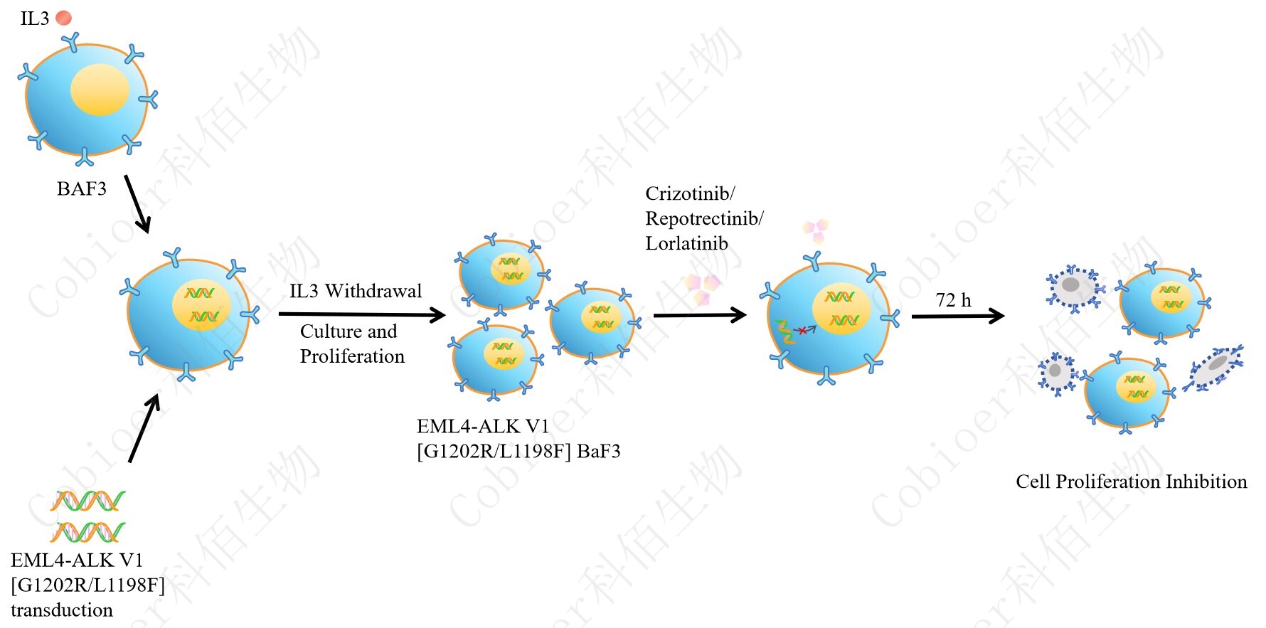 BaF3(小鼠原 B 細(xì)胞)的生長和增殖需要 IL-3 的維持。通過引入各種表達激酶的基因, 能作為 BaF3 的驅(qū)動基因,讓 BaF3 不再依賴 IL-3 而增殖,進而激酶基因成為 BaF3 增殖依 賴的驅(qū)動基因,用于評估小分子藥物對激酶的靶向抑制作用,原理及流程見下圖所示。