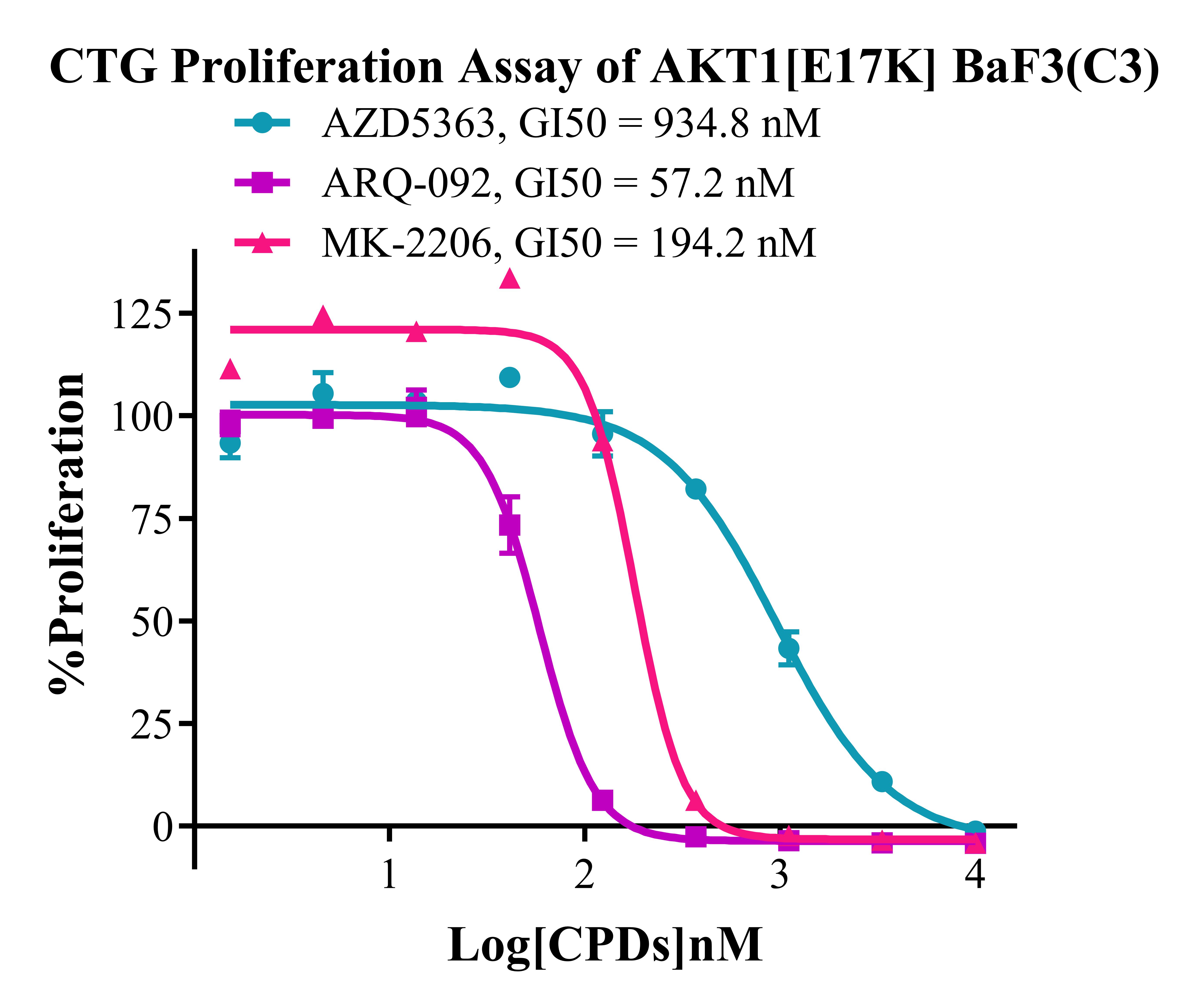 Figure 4. CTG Proliferation Assay of BaF3 AKT1 E17K BaF3(C3).