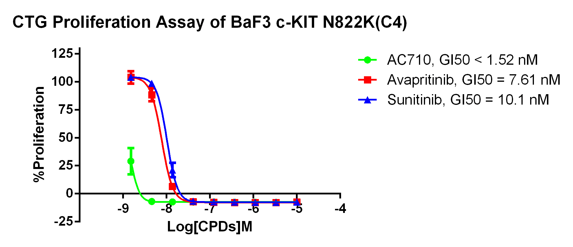 Figure 3. CTG Proliferation Assay of BaF3 c-KIT N822K(C4).