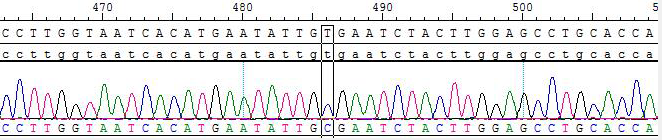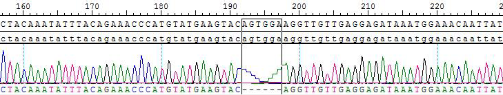 2.Sanger of c-Kit W557_K558del-V654A/BaF3 Figure 2. c-Kit W557_K558del-V654A/BaF3 V654A Figure 3. c-Kit W557_K558del-V654A/BaF3 W557_K558del |