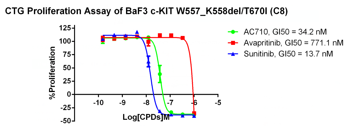 3. Anti-proliferation assay Figure 4. CTG Proliferation Assay of BaF3 C-KIT W557_ K558del/T670I (C8). |