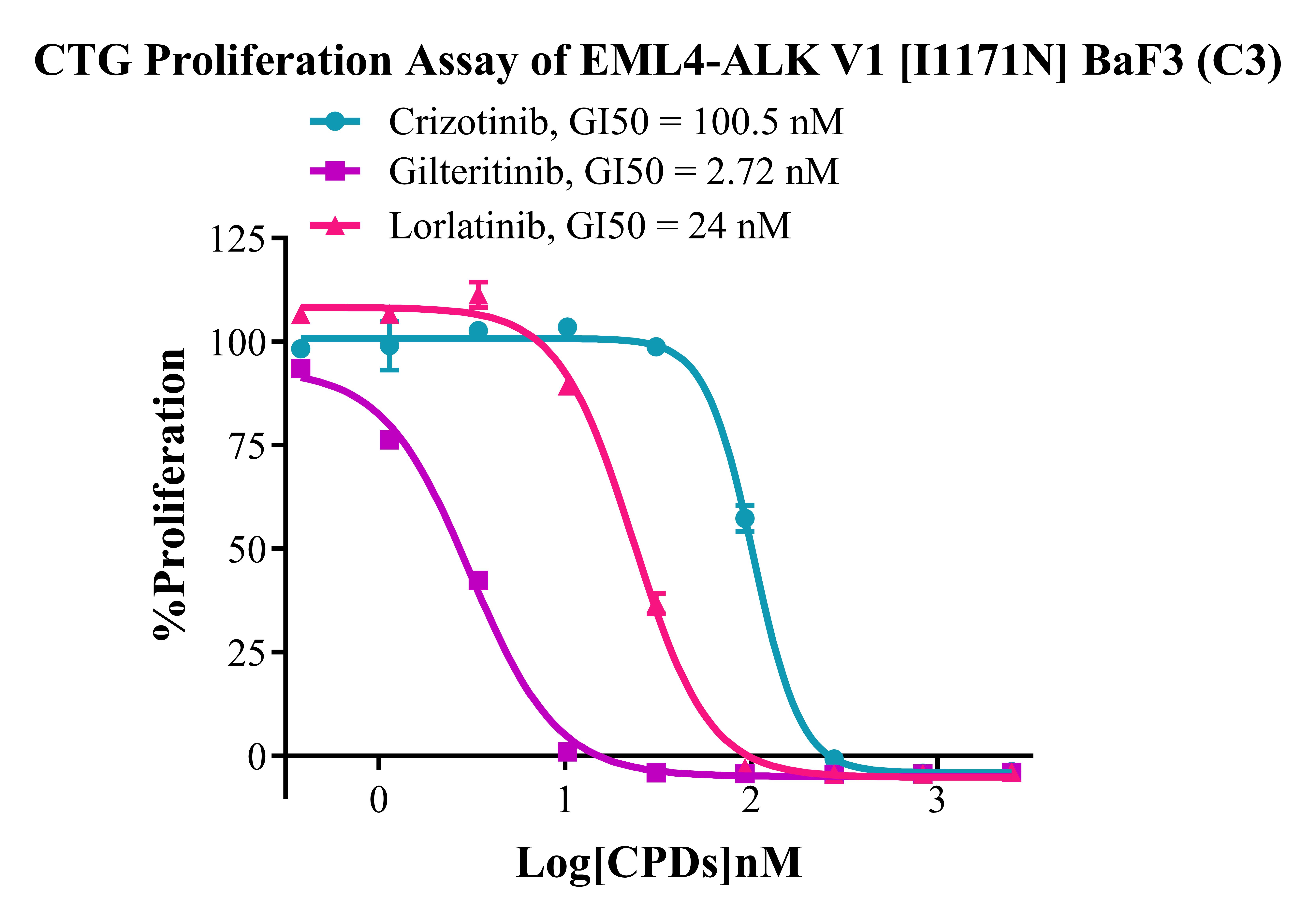 Figure 5. CTG Proliferation Assay of EML4-ALK V1 I1171N BaF3(C3).