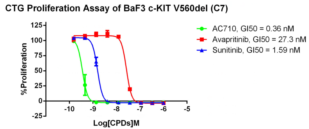Figure 3. CTG Proliferation Assay of BaF3 c-KIT V560del (C7).