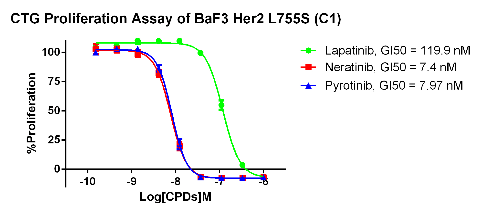 2. Anti-proliferation assay Figure 2. CTG Proliferation Assay of BaF3 Her2 L755S (C1). |