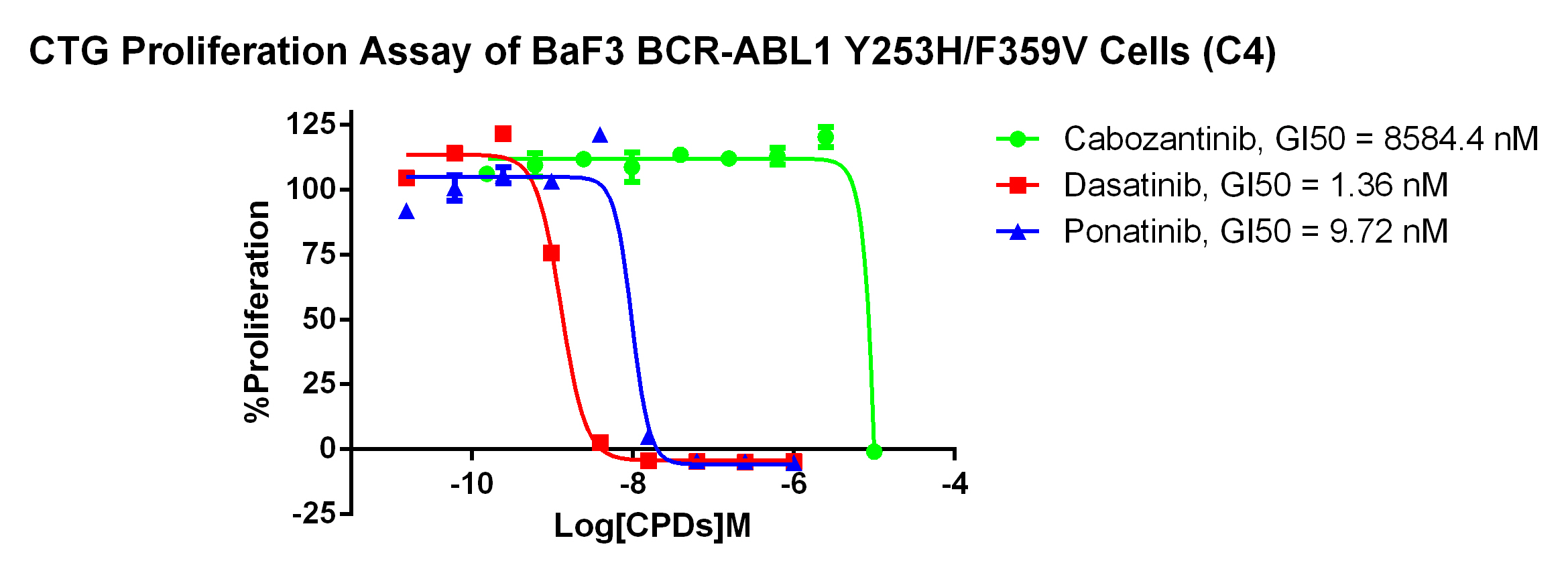 Figure 4. CTG Proliferation Assay of BaF3 BCR-ABL1 Y253H/F359V Cells (C4).