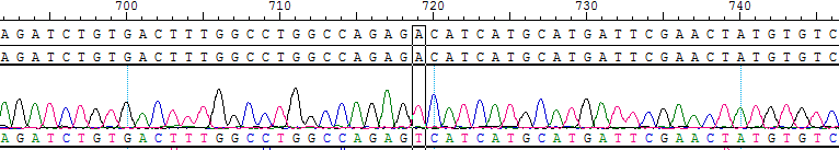1.Sanger of PDPDGFRA D842V-G680R/BaF3 Figure 1. PDGFRA D842V-G680R/BaF3 G680R Figure 2. PDGFRA D842V-G680R/BaF3 D842V |