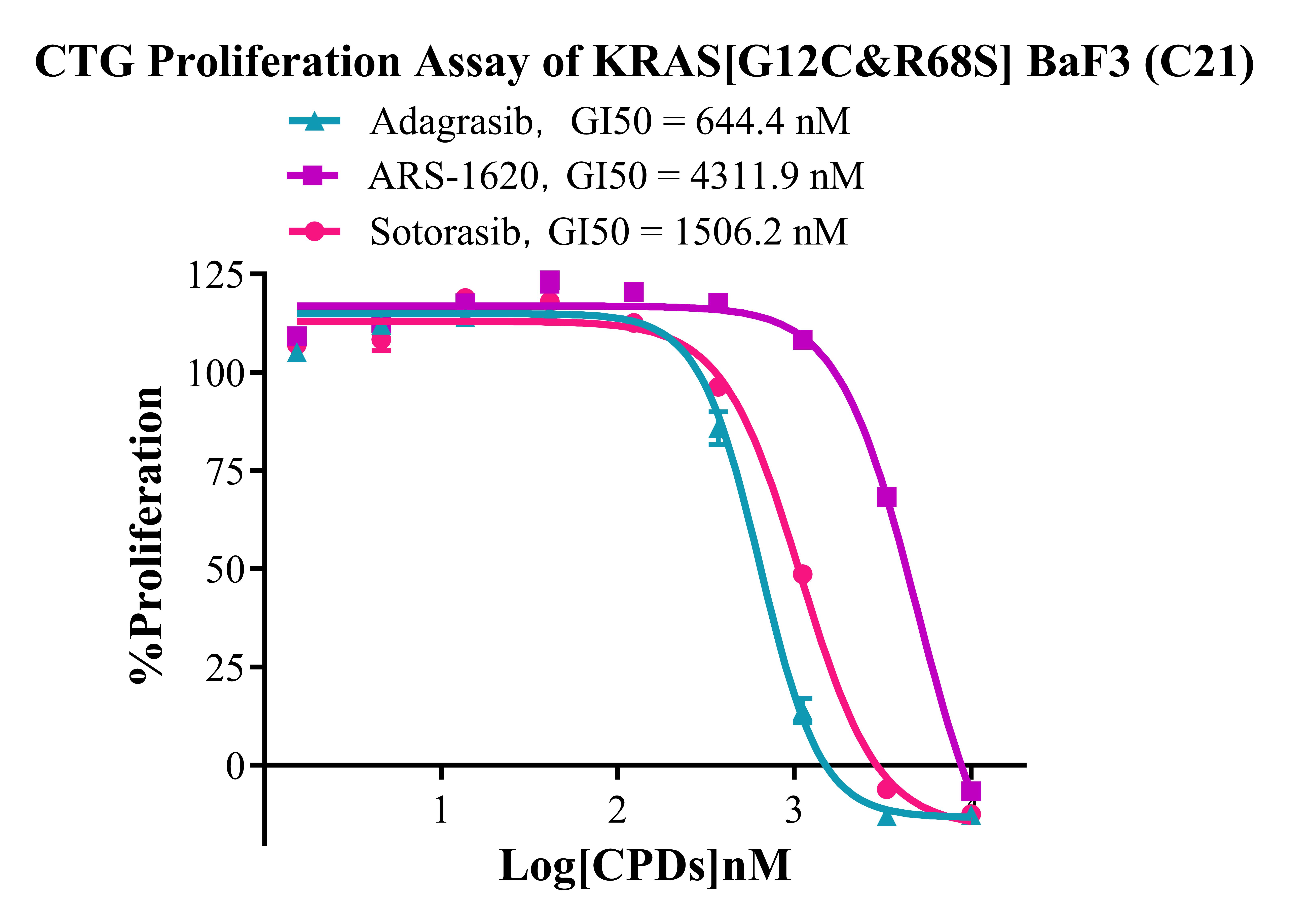 2.Anti-proliferation assay Figure 3. CTG Proliferation Assay of KRAS[G12C&R68S] BaF3 (C21). |