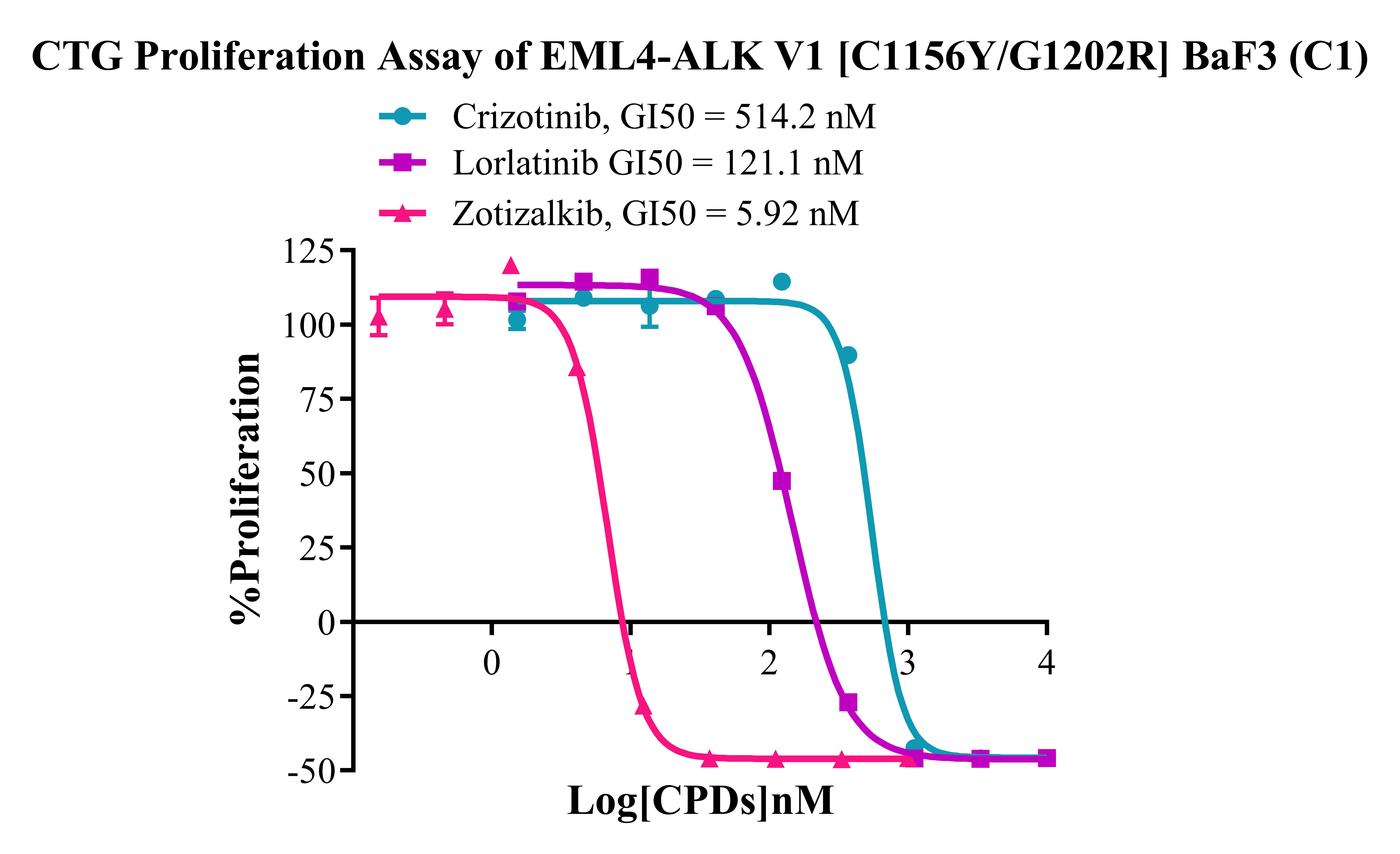 Figure 3. CTG Proliferation Assay of EML4-ALK V1 [C1156Y/G1202R] BaF3(C1).