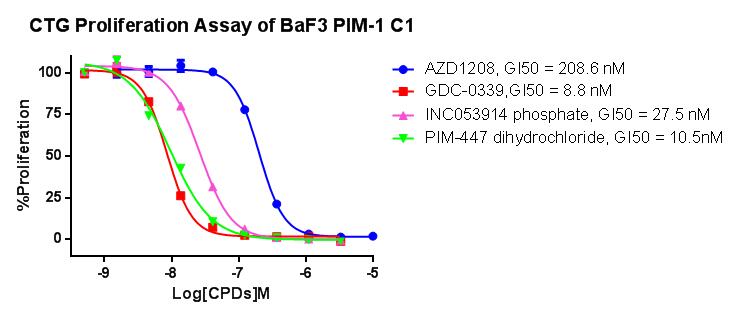 1. Anti-proliferation assay Figure 1. CTG Proliferation Assay of BaF3 PIM-1 C1. |