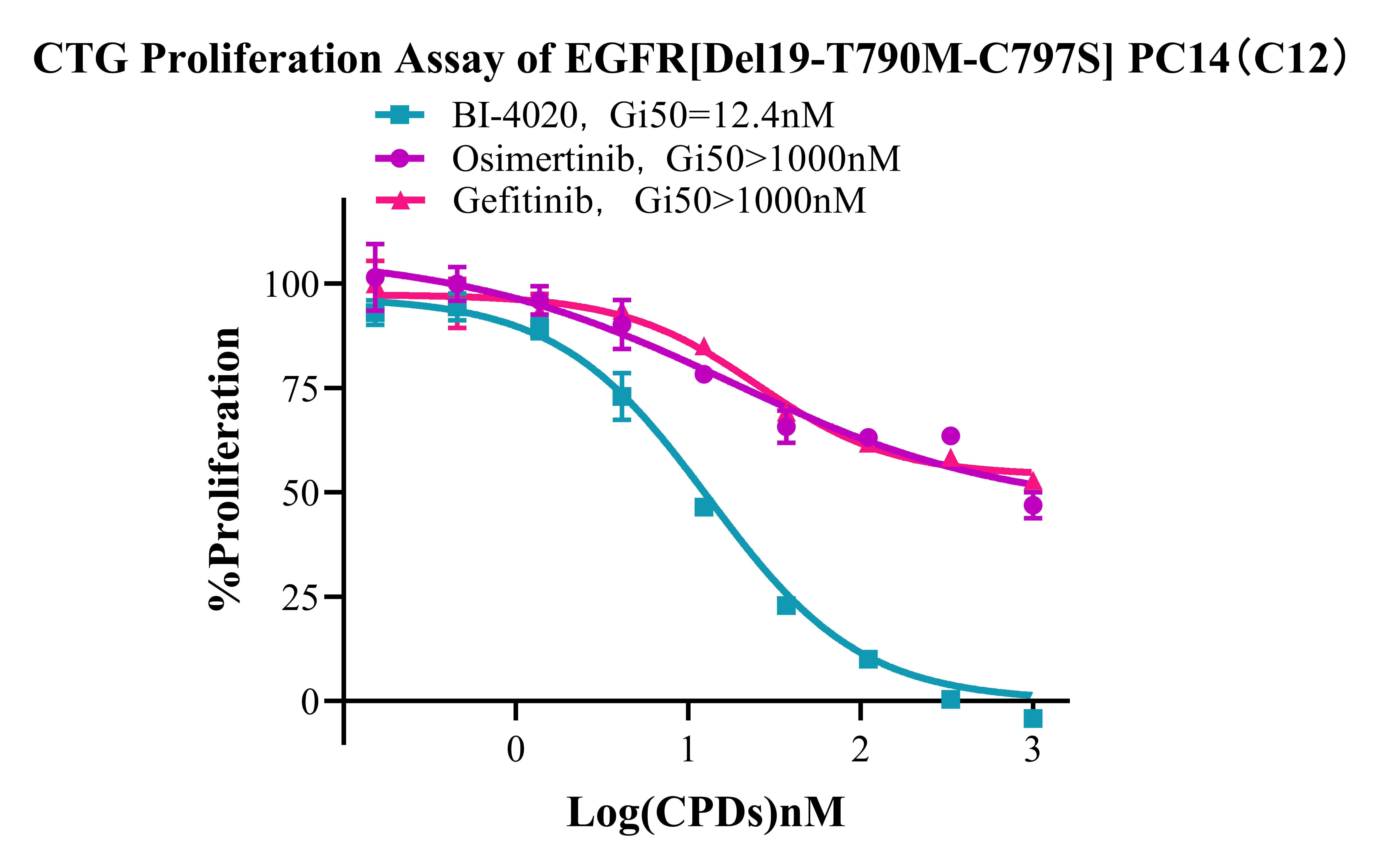 Figure 2. CTG Proliferation Assay Of EGFR Del19/T790M/C797S-PC14 Cells (C12).