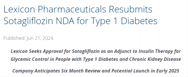 6月21日,Lexicon宣布,在與FDA進行多次互動并得到最近的反饋后,該公司已重新提交了索格列凈(sotagliflozin)的新適應(yīng)癥申請,作為胰島素治療的輔助藥物,用于1型糖尿病和慢性腎臟?。–KD)患者的血糖控制。