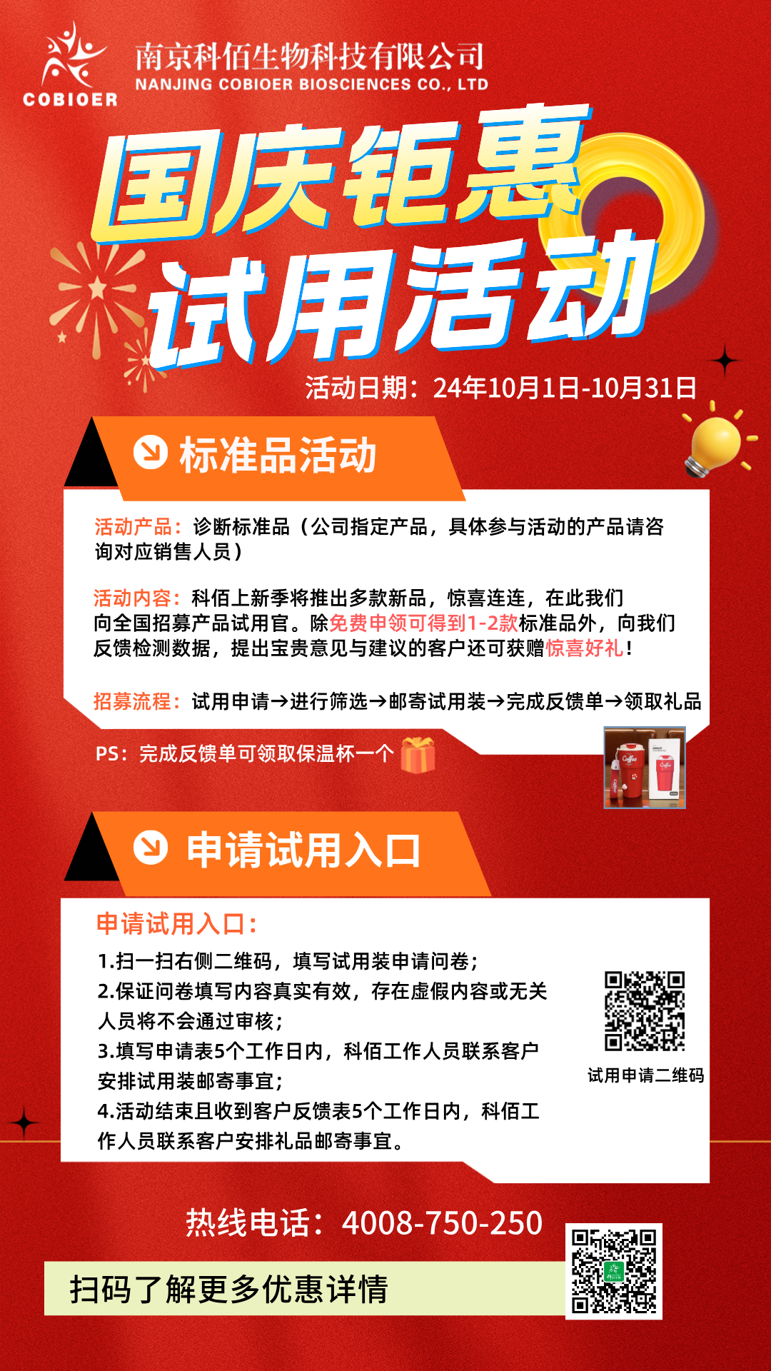 科佰10月上新季將推出多款新品,驚喜連連,在此我們向全國(guó)招募產(chǎn)品試用官。除免費(fèi)申領(lǐng)可得到1-2款標(biāo)準(zhǔn)品外,向我們反饋檢測(cè)數(shù)據(jù),提出寶貴意見(jiàn)與建議的客戶還可獲贈(zèng)驚喜好禮!