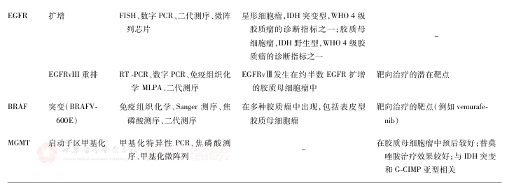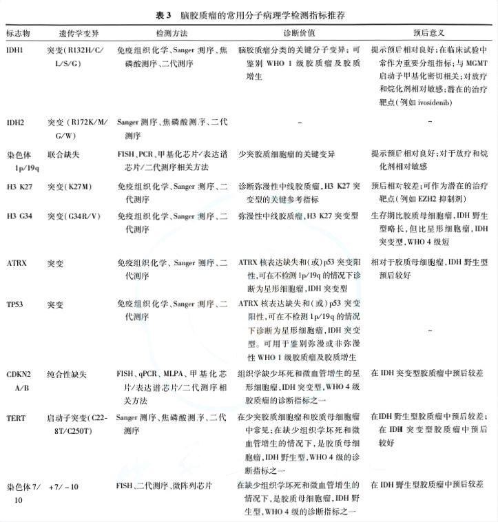 腦膠質(zhì)瘤確診需通過腫瘤切除術(shù)或活組織檢查術(shù)獲取標本,進行組織病理學和分子病理學整合診斷,以確定病理分級和分子亞型。分子標志物對腦膠質(zhì)瘤的個體化治療及臨床預后判斷具有重要意義。