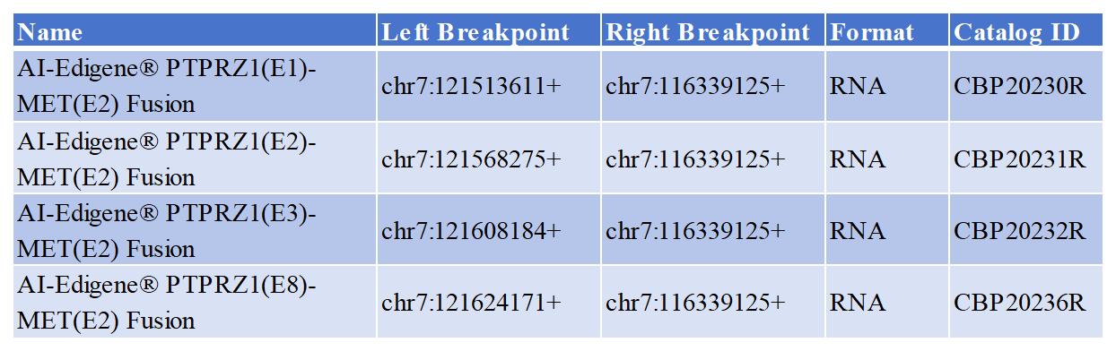 近期,我們上線了融合基因PTPRZ1-MET的標準品,幫助提高PTPRZ1-MET分子診斷的準確性。