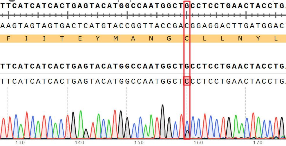 Figure 3:Gene Edited BTK[C481S] Isogenic Cell-測(cè)序結(jié)果