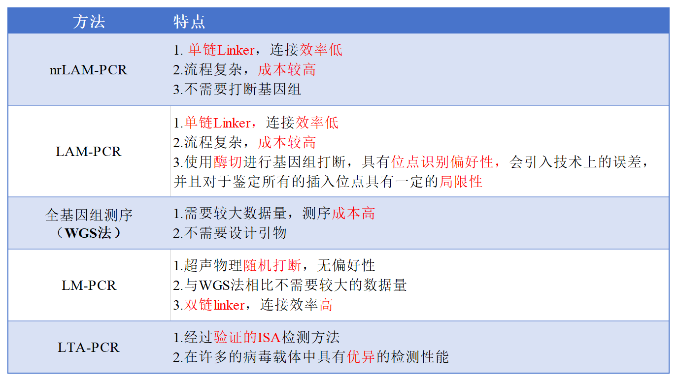 Table 1. 主流的慢病毒整合位點(diǎn)檢測(cè)方法比較
