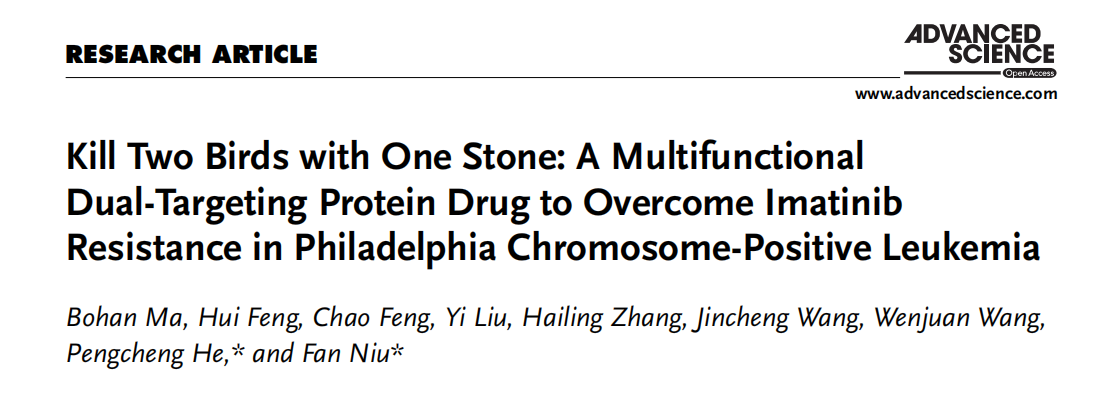 文章題目:Kill Two Birds with One Stone: A Multifunctional Dual-Targeting Protein Drug to Overcome Imatinib Resistance in Philadelphia Chromosome-Positive Leukemia