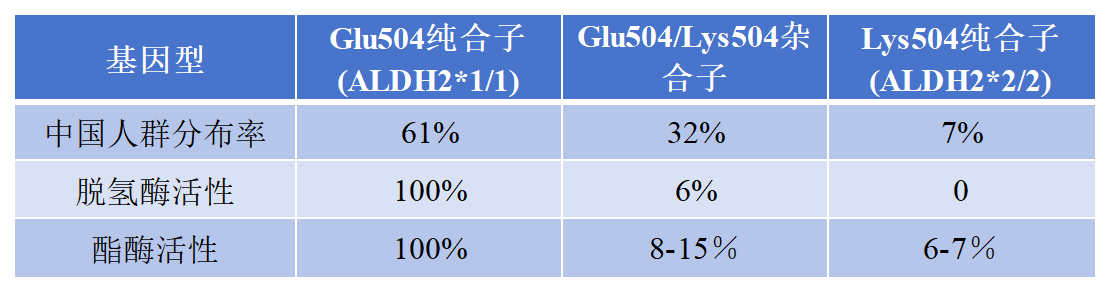 同時東方人中高發(fā)生率的急性酒精中毒也與該突變有關。突變后,酶活性缺失或者降低,導致乙醛在肝臟內(nèi)大量累積,會導致喝酒后產(chǎn)生臉紅、頭暈、心跳加速等,嚴重者甚至會導致酒精性肝病、癌癥(肝癌、消化道癌、胃癌)等不良反應。