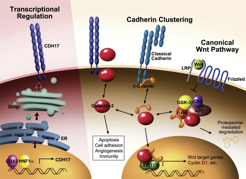 CDH17(Cadherin 17,LI-cadherin)序列由七個細(xì)胞外的鈣粘蛋白結(jié)構(gòu)域和一個非常短的細(xì)胞質(zhì)結(jié)構(gòu)域形成。與其他經(jīng)典的鈣粘蛋白不同,CDH17是一種鈣依賴性跨膜糖蛋白,可介導(dǎo)細(xì)胞在腸上皮中的細(xì)胞粘附。